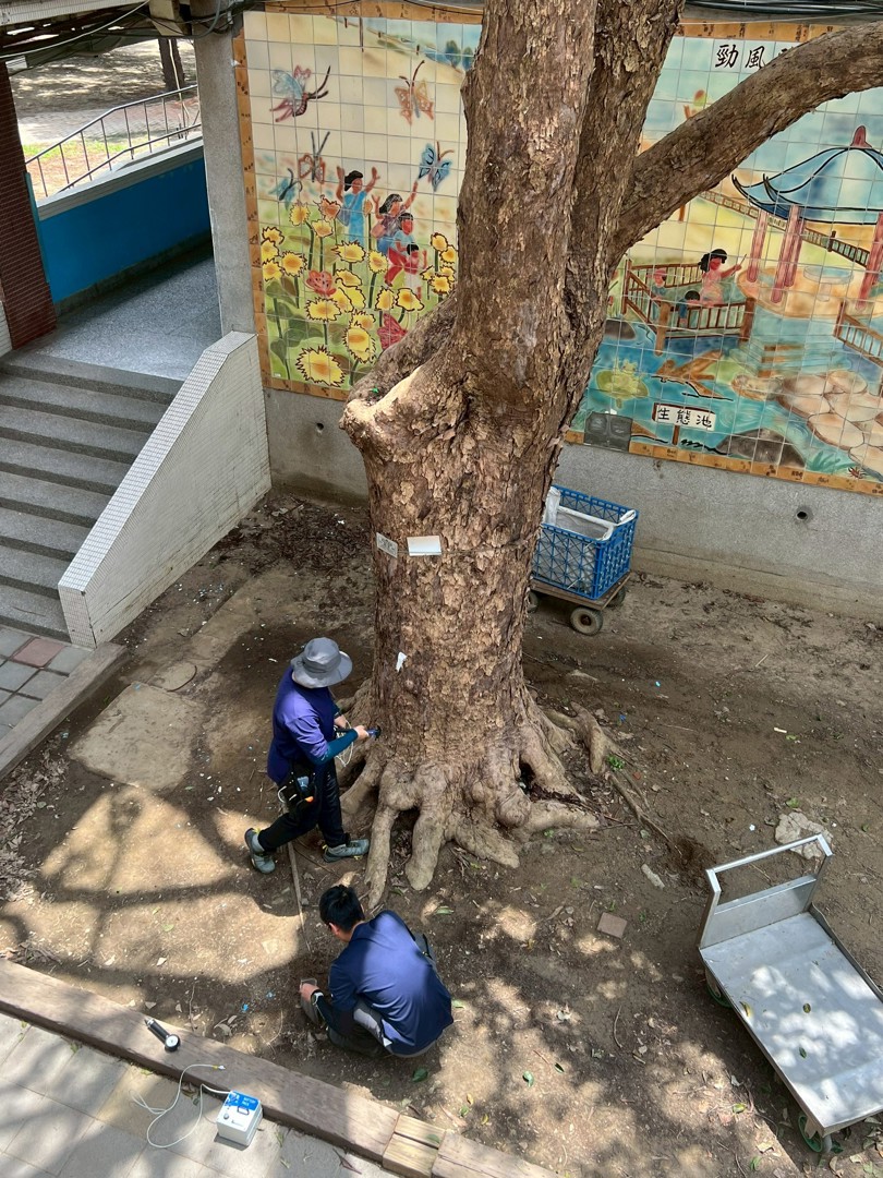 感謝市府委託農業部林業試驗所替南寮的樹爺爺、樹奶奶安排了健康檢查,本校共有四株大樹完成健檢。