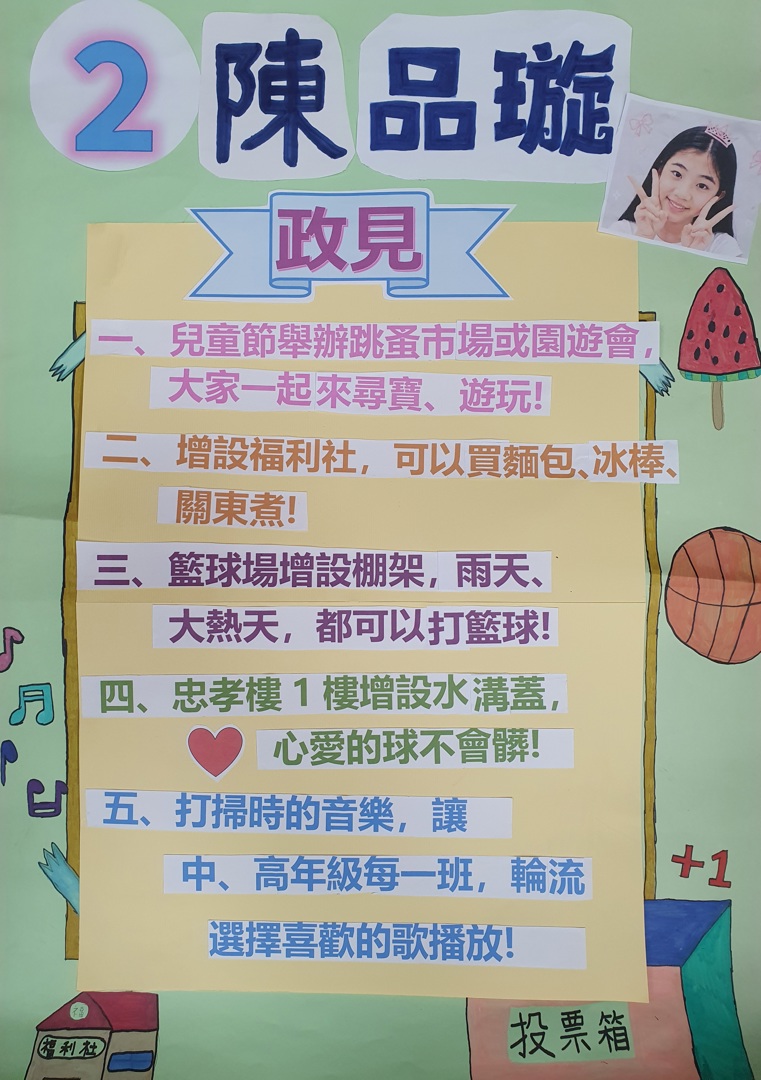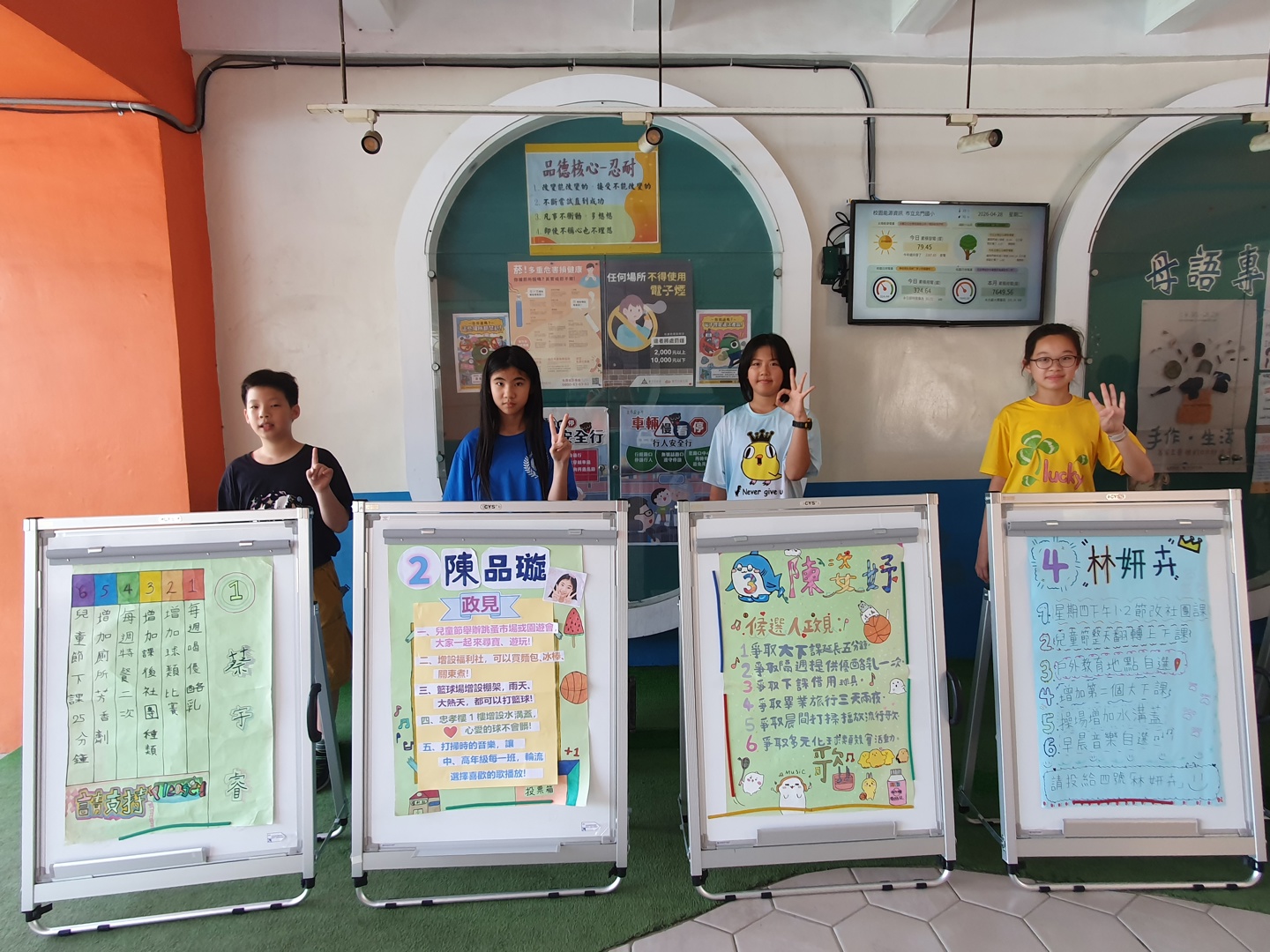 北門國小第26屆學生自治市長選舉熱烈展開 七位候選人政見發表影片上架、競選海報布置完成