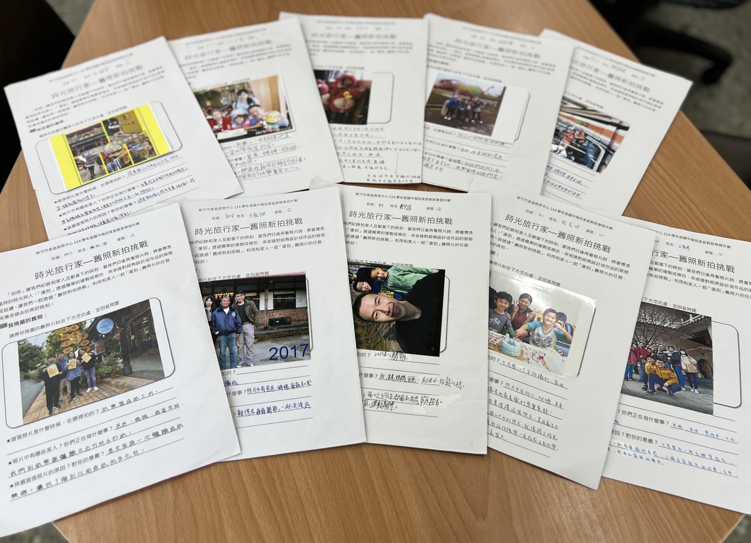 孩子們看到自己幼年時期和阿公阿嬤、爸爸媽媽,或是其他的家人一起合影的照片,大多驚呼「原來我以前就來過這裡!」、「爸爸媽媽以前好年輕、好瘦呀!」。而爸爸媽媽則是看著眼前的青少年,直呼好懷念以前抱在懷裡的小娃兒。所以這份有意義的學習單,讓家人們都認為要更加珍惜在一起的時光,以後要創造更多美好、有趣的家庭回憶。